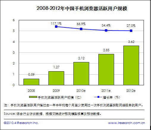 艾瑞報告稱今年手機瀏覽器用戶預計將破兩億