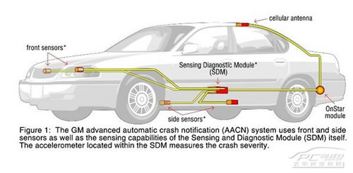 在車輛發(fā)生碰撞時,即使車主暫時昏迷,安吉星仍然能通過衛(wèi)星系統(tǒng)準(zhǔn)確定位車輛位置,并將撞擊的方向、力度、速度、車輛是否翻滾以及碰撞的嚴(yán)重程度等數(shù)據(jù)傳遞到后臺。話務(wù)人員會向車主發(fā)出呼叫,如果車主沒有應(yīng)答,話務(wù)人員會立即將信息提供給警方和急救人員。