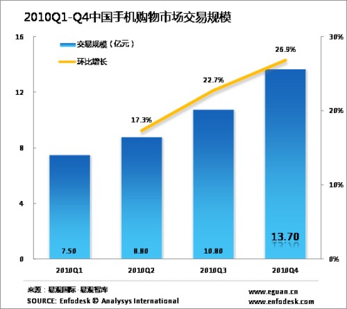 2010年中國手機購物市場規(guī)模達(dá)41億元