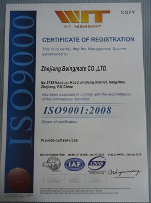 貝因美呼叫中心獲得ISO9001認證