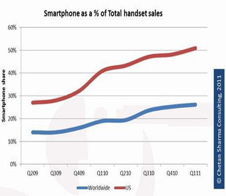 據(jù)國(guó)外媒體報(bào)道,研究機(jī)構(gòu)Chetan Sharma Consulting報(bào)告稱(chēng),2011年移動(dòng)行業(yè)規(guī)模將達(dá)1.3萬(wàn)億美元,接近全球GDP的2%,其中3000億美元將來(lái)自數(shù)據(jù)營(yíng)收。數(shù)據(jù)使用日益普及,美國(guó)人走在最前沿,印度和中國(guó)是移動(dòng)市場(chǎng)增速最快的地區(qū)。