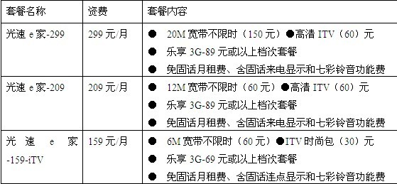 江蘇電信資費(fèi)除了基本的時尚包和全能包之外,還采取了和現(xiàn)有E家套餐捆綁的方式進(jìn)行推廣。