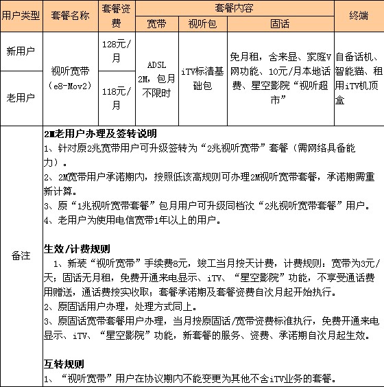 。1)1M視聽寬帶套餐(承諾在網(wǎng)24個月)