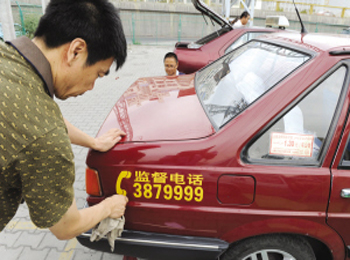 從7月26日起,烏市9400多輛出租車將重新張貼主管部門監(jiān)督電話0991—3879999。