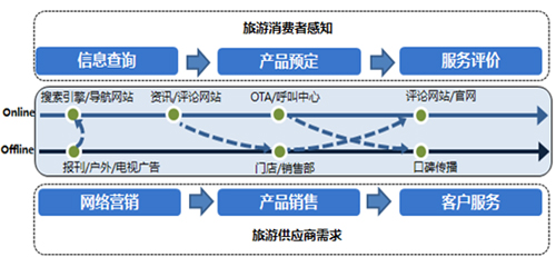 從旅游供應(yīng)商的維度出發(fā),缺失的兩個(gè)環(huán)節(jié)往往對其訂單生成有決定性意義。一方面是在網(wǎng)民獲取旅游信息的環(huán)節(jié)借助互聯(lián)網(wǎng)展示及搜索廣告進(jìn)行品牌曝光及活動(dòng)營銷,提升企業(yè)的品牌知名度及銷售轉(zhuǎn)化率。另一方面是在網(wǎng)民針對旅游服務(wù)進(jìn)行評價(jià)及分享的環(huán)節(jié)及時(shí)解答服務(wù)疑問引導(dǎo)評論主題,通過口碑因素提高老用戶APRU值并帶來新用戶。