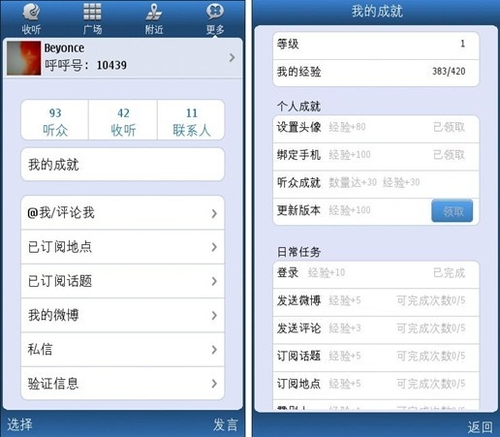 語音微博1.6 for Symbian新加入的私信和經(jīng)驗(yàn)系統(tǒng)的加入使得用戶間信息的交流更緊密、分享更便捷。從此,千里傳音不是夢(mèng)。