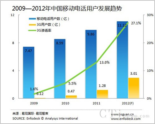 易觀智庫:2012年3G用戶數或將超過3億