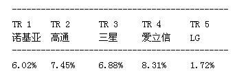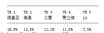 第一階段;湯森路透將每一項(xiàng)專(zhuān)利同歐洲電信標(biāo)準(zhǔn)協(xié)會(huì)截至2011年11月18日的LTE規(guī)范進(jìn)行比較,確定專(zhuān)利的重要性。第二階段涉及先有技術(shù)檢查,即審查在美國(guó)和歐洲申請(qǐng)專(zhuān)利過(guò)程中的先有技術(shù)參考文獻(xiàn)。湯森路透利用先有技術(shù)參考文獻(xiàn)評(píng)估每項(xiàng)專(zhuān)利的新穎性并給出新穎性評(píng)級(jí)。湯森路透發(fā)現(xiàn),擁有屬于LTE標(biāo)準(zhǔn)范疇的基本與新穎專(zhuān)利的領(lǐng)先廠商有諾基亞、高通、三星、愛(ài)立信和LG。結(jié)果如下: