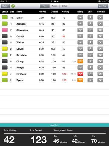 北京時(shí)間2月23日消息,《移動(dòng)新發(fā)現(xiàn)》今日報(bào)道,F(xiàn)ireSpotter公司新推出的NoshList(nosh.com/list)是一款餐館等位iPad應(yīng)用,餐館方面只需依次輸入排隊(duì)用戶的手機(jī)號碼,就能自動(dòng)向快要排到的用戶發(fā)送呼叫提醒信息。