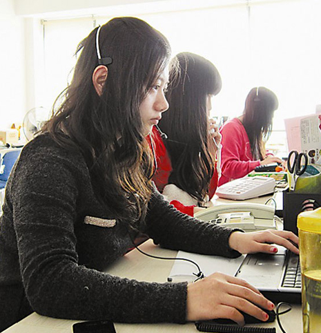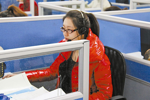 趙曉薇(化名)是拉手網(wǎng)北京客服部的一名工作人員,每天早上8:30,她會(huì)準(zhǔn)時(shí)戴上耳麥,開始一天忙碌的工作!疤孛,電話多的時(shí)候,一天得有300個(gè)來(lái)電!睍赞笔且粋(gè)語(yǔ)氣平和,聲音甜美,笑容溫和的女孩子。正說(shuō)著,她就趕緊接通了正在鈴鈴作響的電話,開始熱情、耐心地為用戶釋疑解困。