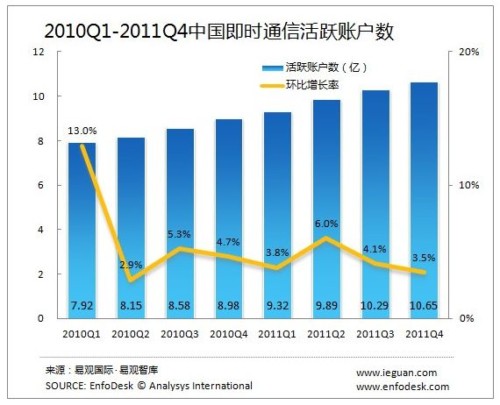 中國即時(shí)通信活躍賬戶數(shù)達(dá)到10.65億