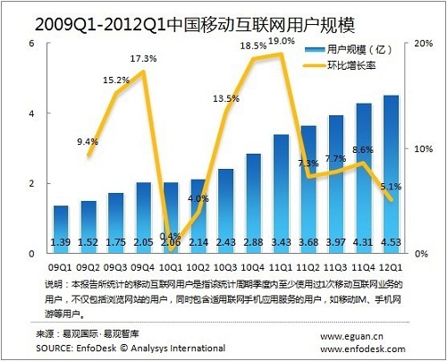 易觀:2012Q1中國移動互聯(lián)網(wǎng)市場規(guī)模突破300億