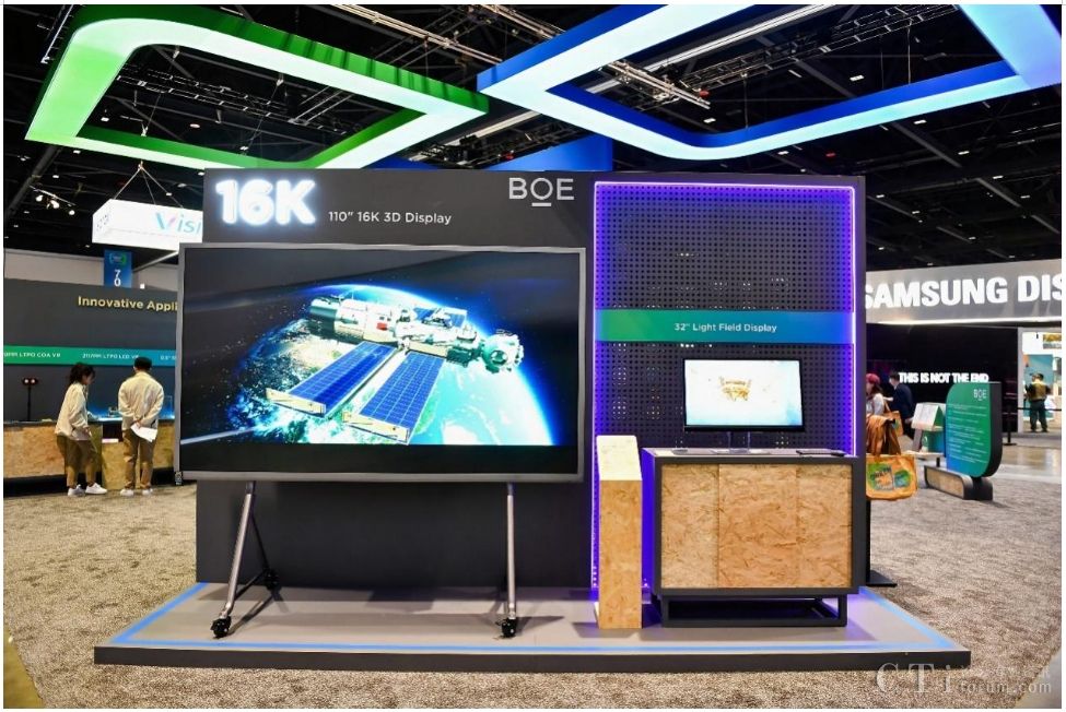 本次SID,BOE(京東方)攜三大技術(shù)品牌重磅首發(fā)的多款行業(yè)領(lǐng)先顯示技術(shù)和產(chǎn)品驚艷亮相。步入展區(qū),首先映入眼簾的是BOE(京東方)重磅首發(fā)的全球首款16K 110英寸超大尺寸裸眼3D顯示屏,并以超高清、超高分辨率、多視點、廣色域等優(yōu)勢突破了顯示行業(yè)的創(chuàng)新高度,該產(chǎn)品搭載高色域Mini LED背光技術(shù)以及BOE(京東方)自主研發(fā)的16K交織排圖算法,3D視角擴大至60°,廣泛應(yīng)用于廣告、會議、教育等多元化場景。