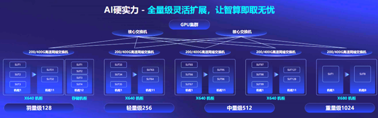 隨著算力成為稀缺資源,寧暢從客戶角度出發(fā),提供了“先享后付”的算力購買方案。目前,寧暢AI算力棧已開放免費試用,現已有50+用戶預約試用。該算力棧是一個包括128臺GPU服務器的千卡級別算力集群,標準化智算中心建設方案囊括了羽量級128、輕量級256、中量級512、重量級1024四個等級,實現全量級靈活擴展,給了用戶極大選擇空間。用戶可在試用中嘗試不同的業(yè)務組合、方案框架,以便找到“最優(yōu)性價比”的智算中心建設方案。