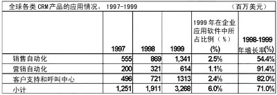根據(jù)IDC研究,1999年全球CRM應(yīng)用軟件市場正式形成,并快速增長。CRM軟件和服務(wù)收入的年增長率高達(dá)71%,其中營銷自動化軟件的增長率高達(dá)91.4%。