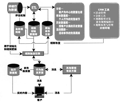 關(guān)系數(shù)據(jù)庫系統(tǒng)有三種主要數(shù)據(jù):典型客戶案例的詳細(xì)數(shù)據(jù)、對所有客戶的總結(jié)性歷史數(shù)據(jù)以及具體活動的數(shù)據(jù)。分析數(shù)據(jù)庫提供輸入數(shù)據(jù),從而得到對客戶的認(rèn)識,而滿足ETL處理的業(yè)務(wù)規(guī)則庫為分析數(shù)據(jù)庫提供派生屬性。這個(gè)過程將保持離線分析和實(shí)時(shí)事件觸發(fā)規(guī)則之間的同步,在動態(tài)建立表格的過程中處理初始化完成后的派生屬性相加,并對相應(yīng)的元數(shù)據(jù)進(jìn)行更新,這些處理都是自動實(shí)現(xiàn)的。