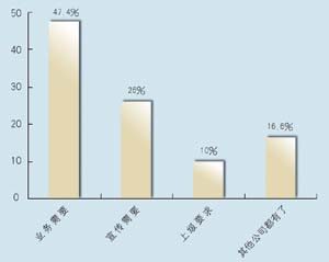 在問到對CRM的熟悉程度方面,有12家表示熟悉,占到63.2%,另有7家表示不熟悉,說明許多企業(yè)已經(jīng)對CRM有一定了解,不過也仍有相當(dāng)大的市場空間。其中有8家建立了CRM系統(tǒng),占到42%,計劃建立的有9家,占到47.4%,而有2家表示短期不會建立。從調(diào)查發(fā)現(xiàn),幾乎所有受訪者都接受和認(rèn)同CRM,盡管有一些企業(yè)還不熟悉,但在調(diào)查問卷中對此表現(xiàn)出極大的興趣。在CRM的采購動機上,有9家表示是為了提高業(yè)務(wù),占到將近一半的比例(47.4%),而有5家表示出于企業(yè)宣傳,2家屬于上級主管部門要求,有3家表示是出于同行的示范。調(diào)查顯示,企業(yè)獲得CRM的信息來源很廣,最多的是通過報刊雜志的廣告,有6家,占31.6%,而上級推薦和供應(yīng)商推薦各有4家,各占21%,有兩家是集成商推薦,此外還有3家通過展會獲得相關(guān)信息。