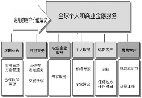 客戶(hù)細(xì)分方案 澳大利亞國(guó)民銀行定義了六個(gè)等級(jí)的客戶(hù)群,提供著不同程度的服務(wù), 創(chuàng)建這些客戶(hù)等級(jí)的目的是讓銀行更容易地對(duì)客戶(hù)進(jìn)行定義(如圖2所示)。