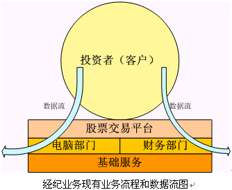 。。從上圖可以看出,現(xiàn)在的證券公司的經(jīng)紀業(yè)務(wù)為各個股民或者說投資者所提供的服務(wù)就是交易平臺的服務(wù),也就是交易通道服務(wù)。營業(yè)部的其他服務(wù)都是為這個交易通道服務(wù),這些服務(wù)品種都是非常基礎(chǔ)的。而營業(yè)部的數(shù)據(jù)流,也就是各個客戶的基本信息和交易信息,通過電腦部和財務(wù)部門就走到了終結(jié),沒有被更好的利用。
