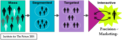 首先,互聯(lián)網(wǎng)的出現(xiàn)改變了營銷的概念,為大規(guī)模定制創(chuàng)造了空前的機遇。隨著富裕而又有辨別能力的中產(chǎn)階級的逐漸壯大,預(yù)先營銷的期望以及針對個人的解決方案日益成為一種標(biāo)準。從記住他們的行為&偏好并為他們發(fā)送相關(guān)產(chǎn)品信息 (例如Amazon.com) …到幫助他們得到自己理想中的產(chǎn)品 (例如Dell.com,) ,CRM觀念的關(guān)鍵之處就在于為客戶提供符合他們需求的產(chǎn)品/服務(wù)而不是向他們推銷你的東西。互聯(lián)網(wǎng)使你能夠與客戶建立學(xué)習(xí)關(guān)系,從銷售轉(zhuǎn)移到解決問題。互聯(lián)網(wǎng)上的CRM已經(jīng)上升到了另一個高度。