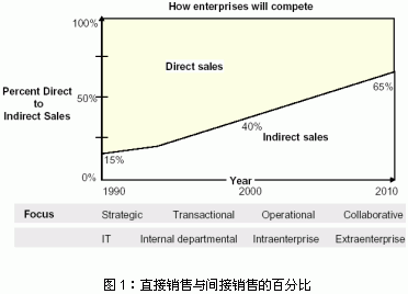 目前,在越來(lái)越多的行業(yè)銷(xiāo)售額的大部分是通過(guò)間接渠道取得的。例如,在高科技、生活消費(fèi)品和離散制造行業(yè),間接銷(xiāo)售合作伙伴帶來(lái)了的收入占總收入的70%以上