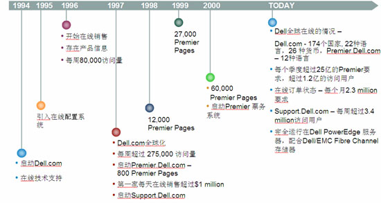 Dell從2004年開始,在中國大陸推出改服務,開始的服務對象都是一些跨國公司在國內(nèi)的分支機構,到現(xiàn)在為止,已經(jīng)有1000個用戶,通過Premier下單的金額,也從開始的每月不足10萬美元,到現(xiàn)在的每月超過400萬美元。