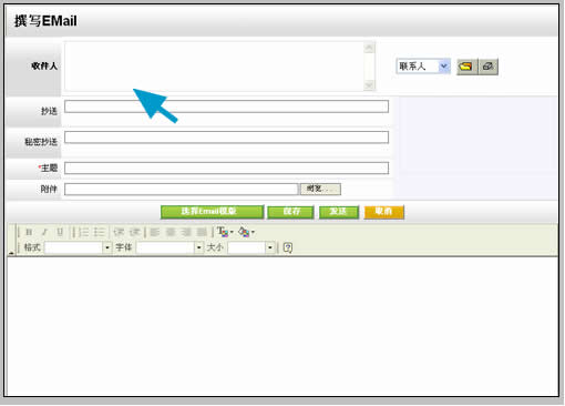 值得推薦的是它的Email字段,因?yàn)橐卓蛢?nèi)嵌了Email服務(wù)器,點(diǎn)擊聯(lián)系人email后直接調(diào)用易客CRM自身的撰寫新郵件界面,較之前面兩種CRM的方式,與郵件系統(tǒng)契合更加緊密。不足之處在于,在彈出的撰寫郵件窗口中收件人部分并沒有自動(dòng)填寫該聯(lián)系人,而是以不可編輯的方式出現(xiàn),推測可能和試用版有關(guān)。如下圖: