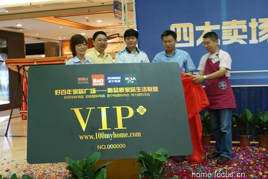 特賣周期間,將有兩個重要角色與成都市民正式見面——好百年家居廣場網(wǎng)站(www.100myhome.com)和聯(lián)盟金卡。好百年家居廣場網(wǎng)站不僅展示好百年家居廣場地標形象,更有諸多為消費者量身打造的功能模塊,顧客既可以登陸網(wǎng)站了解廣場最新的活動信息,還可以登陸會員窗口、管理個人信息、查詢會員積分,與賣場進行有效互動。而聯(lián)盟金卡則與現(xiàn)有聯(lián)盟銀卡一道,組成完善的會員服務體系。啟動儀式上,四大賣場的代表共同開啟了網(wǎng)站和金卡,博得現(xiàn)場觀眾一片掌聲。