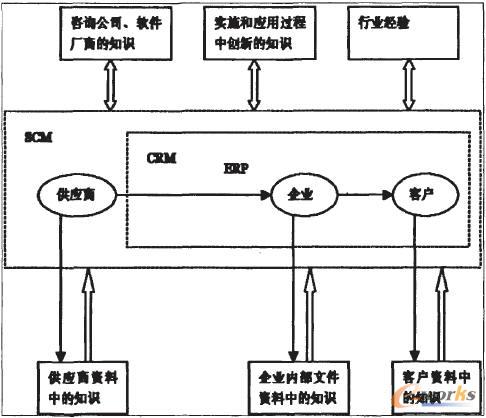 供應(yīng)鏈上的各個企業(yè)在各自ERP系流運行的基礎(chǔ)上,與客戶之間用CRM系統(tǒng)聯(lián)結(jié)起來,而整個供應(yīng)鏈上的所有企業(yè)都在SCM系統(tǒng)框架之內(nèi)。三者整合過程中,供應(yīng)鏈上各個企業(yè)(包括上游企業(yè)即供應(yīng)商,下游企業(yè)即客戶)資料中的知識由各個企業(yè)傳遞到CRM信息管理平臺之上。而咨詢公司與軟件廠商的知識、實施和應(yīng)用過程中創(chuàng)新的知識以及行業(yè)經(jīng)驗等知識則需要在整合過程中在各個企業(yè)湖軟件廠商之間相互交流、磨合,最后提出大家都比較滿意的方案,付諸實拖。