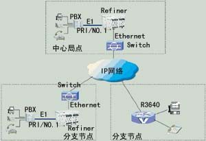 對于大多數(shù)的企業(yè)用戶,都擁有自己的用戶交換機PBX。在進行IP電話網(wǎng)的建設(shè)中,這些PBX將被保留,繼續(xù)承擔起用戶接入的功能。而這些PBX之間的中繼連接都將通過IP骨干網(wǎng)來完成。這樣,既可以節(jié)約價格不菲的長途中繼租用費,也避免了大規(guī)模的改造所帶來的浪費。