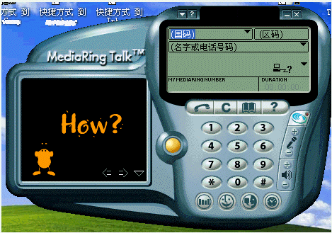 1.撥打電話:選擇所撥打電話的類型為"PC to Phone";選擇國家代碼(中國填寫86),從下拉列表中直接選擇即可;輸入城市區(qū)號,通過鍵盤輸入或在"電話機"中按鍵均可;鍵入用戶號碼;點擊呼叫按鈕,這時彈出一個對話框,請您輸入Value Fone帳號和密碼,正確輸入后,MediaRing 會通過服務器查找對方是否也已登錄在服務器上,如果是,對方的 MediaRing 就會自動響鈴,若對方接聽,雙方就可以通過 MediaRing 進行通話。如果與對方?jīng)]有聯(lián)絡成功,可能是對方并不在線,此時MediaRing會詢問是否要斷開并聯(lián)絡對方,選擇“是”,接下來軟件會斷線并通過調(diào)制解調(diào)器直接向?qū)Ψ綋芴枺ㄏ喈斢谕ㄟ^你的電話直接撥打?qū)Ψ教柎a),對方聽到一串特殊的響鈴(兩到三聲鈴聲)后便會明白有人在網(wǎng)絡上想找他了。對方應立即聯(lián)上Internet并使用MediaRing接聽電話。