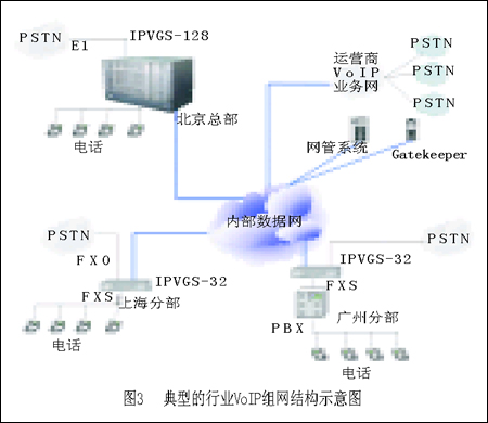我國現(xiàn)有很多擁有自己專網(wǎng)的行業(yè),比如金融、能源和一些政府機構(gòu),它們正是通過這樣的方案來實現(xiàn)內(nèi)部通話的。這些行業(yè)目前也正是中國VoIP市場的主力,由于行業(yè)用戶的規(guī)模很大,目前中國的很多行業(yè)實際上都有一套運營級的VoIP網(wǎng)絡(luò)。圖3是一個典型的行業(yè)VoIP組網(wǎng)結(jié)構(gòu)圖。