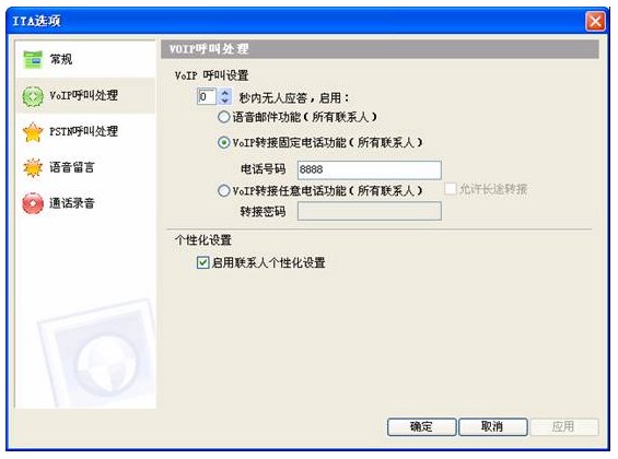 Shenzhen),深圳側(cè)的ITA 檢測(cè)到Skype(Company. Shenzhen)有呼叫進(jìn)入,將該VoIP呼叫Forward到8888語(yǔ)音引導(dǎo)號(hào)碼,此時(shí)臺(tái)北辦公室的員工將聽到“請(qǐng)輸入分機(jī)號(hào)碼”的提示,他(她)然后輸入2001,交換機(jī)將該呼叫轉(zhuǎn)接到分機(jī)2001,臺(tái)北與深圳就可以通話了。