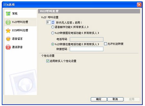如果你使用的電話交換機(jī)比較簡(jiǎn)單,沒有內(nèi)置有語(yǔ)音引導(dǎo)號(hào)碼,你可以使用 ITA的轉(zhuǎn)接任意電話功能來實(shí)現(xiàn),設(shè)置0秒啟動(dòng),將轉(zhuǎn)接密碼置為空,配置如下: