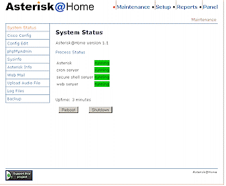 web GUI也被認(rèn)為是Asterisk管理入口(Asterisk Management Portal,AMP),使用它可允許你讀取和編輯數(shù)據(jù)庫(kù),查看報(bào)告,更改設(shè)置等(圖3)。