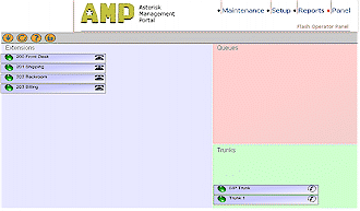 面板標(biāo)簽(圖8)是一個(gè)由Flash建立的操作面板,它包含有不同的extensions、隊(duì)列和中斷,并可允許你來(lái)查看誰(shuí)在使用這個(gè)系統(tǒng),還可轉(zhuǎn)移呼叫、掛斷線路并可通過(guò)面板來(lái)建立電話會(huì)議。