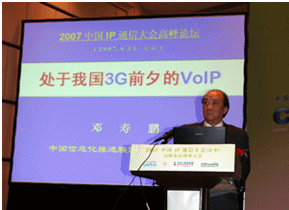 國(guó)務(wù)院發(fā)展研究中心局長(zhǎng)鄧壽鵬的發(fā)言“處于我國(guó)3G前夕的VoIP”正式拉開了本次大會(huì)的序幕。鄧壽鵬局長(zhǎng)的發(fā)言詳細(xì)闡述了3G和VoIP在中國(guó)的發(fā)展現(xiàn)狀,客觀分析了這兩個(gè)新技術(shù)存在的不足以及未來(lái)將帶來(lái)的巨大生產(chǎn)力進(jìn)步和其中潛在的巨大商機(jī), 對(duì)運(yùn)營(yíng)商傳統(tǒng)通信方式的沖擊以及對(duì)其轉(zhuǎn)型為全業(yè)務(wù)服務(wù)提供商的推動(dòng)力。