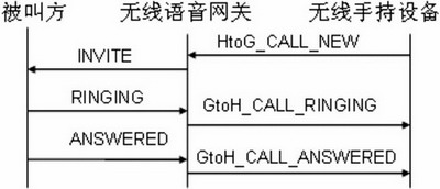 當用戶通過無線手持設備撥打一個號碼時,無線手持設備將發(fā)送一個HtoG_CALL_ NEW的內(nèi)部會話信令連同呼叫的號碼給無線語音網(wǎng)關,無線語音網(wǎng)關收到該信令后,將根據(jù)該信令構造相應的SIP消息并發(fā)送到外部網(wǎng)絡。當無線語音網(wǎng)關收到來自被叫方表示振鈴信息的暫時應答RINGING時,將發(fā)送一個GtoH_CALL_RINGING的內(nèi)部會話信令給手持設備。當無線語音網(wǎng)關收到來自被叫方表示應答的信息ANSWERED時,語音網(wǎng)關將啟動RTP線程并發(fā)送一個GtoH_CALL_ANSWERED的內(nèi)部會話信令給手持設備以通知被叫方已應答。此時手持設備開啟語音進程,與被叫方實現(xiàn)通話。