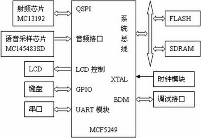 除內(nèi)核外,完整的操作系統(tǒng)還需要編寫鍵盤,LCD,音頻驅動和射頻芯片驅動。音頻驅動采用Phlips I2S數(shù)據(jù)格式,設定采樣率為8KHz。射頻芯片驅動采用Freescale公司為MC13192提供的配套軟件模塊。