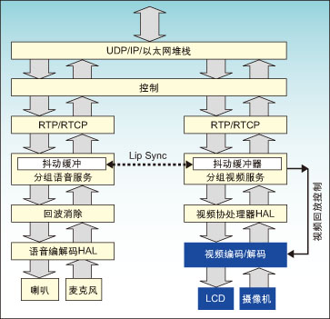 圖2:在處理器/協(xié)處理器架構中實現(xiàn)的IP音視頻數據流