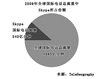 盡管全球的國際長途電話呼叫量增長在減緩,但是Skype的業(yè)務量卻急劇上升。2008年,Skype網內用戶間的國際長途呼叫量的增幅高達51%,2009年這一增幅達到63%,達到540億分鐘。如今,Skype已經成為全球最大的跨境通話服務提供商。