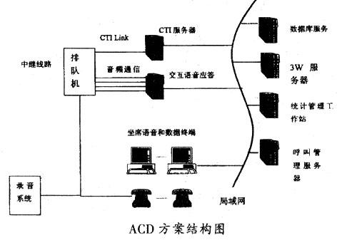 ____提供ACD方案的廠商傳統(tǒng)上是生產(chǎn)程控交換機(jī)的廠商。80年代以來(lái),交換機(jī)廠家采取 了以下發(fā)展策略:在增強(qiáng)路由能力的基礎(chǔ)上開(kāi)放交換機(jī)的控制接口,以標(biāo)準(zhǔn)的軟、硬件格 式提供CTI-Link,集成成熟的語(yǔ)音產(chǎn)品作為語(yǔ)音服務(wù)平臺(tái)。因此,ACD方案走的是一條基于 CTI-Link標(biāo)準(zhǔn)、專業(yè)通信和計(jì)算機(jī)廠家利用各自優(yōu)勢(shì)分工合作的路。