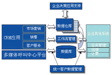 一個(gè)完整的客戶關(guān)系管理系統(tǒng)應(yīng)該包括:多媒體呼叫中心系統(tǒng)、客戶關(guān)系管理應(yīng)用、統(tǒng)一客戶數(shù)據(jù)管理系統(tǒng)和數(shù)據(jù)倉(cāng)庫(kù)、工作流管理系統(tǒng)和企業(yè)決策應(yīng)用支持系統(tǒng)。
