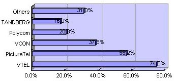 至于終端的品牌,賽迪顧問(wèn)在對(duì)用戶、渠道經(jīng)銷商的調(diào)查中,發(fā)現(xiàn)有一半以上的被調(diào)查者知道VTEL和PictureTel,另外一個(gè)比較知名的品牌是VCON,如圖3所示。