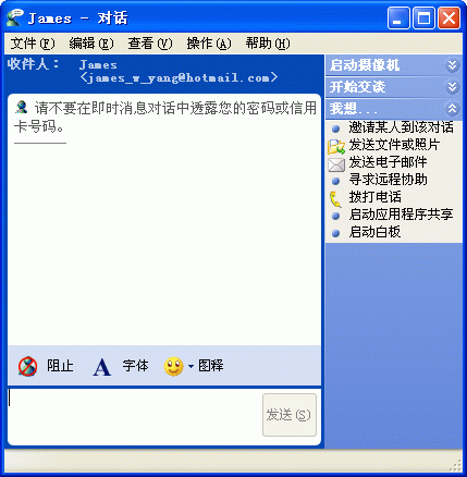 在對(duì)你的音、視頻設(shè)備檢查無誤、調(diào)試完畢后,恭喜你!你可以馬上給你的朋友打可視電話了。點(diǎn)擊在線好友的Yahoo! ID,就會(huì)彈出一個(gè)訊息發(fā)送框(圖6),在菜單欄下面的幾個(gè)按鈕中有“視頻”和“語音”兩個(gè)按鈕。沒錯(cuò)!就是它們了,點(diǎn)吧!點(diǎn)擊“視頻”按鈕后彈出了剛才的“我的即時(shí)影像”窗口;點(diǎn)擊“語音”按鈕后,訊息發(fā)送框中間部分會(huì)多出一條語音顯示和控制的狀態(tài)欄。(見圖7)對(duì)方只需右鍵單擊朋友列表中你的Yahoo! ID,并選擇“觀看即時(shí)影像”即可看到你的影像并同時(shí)聽到你的聲音。OK,開始你們愉快的交流吧。)