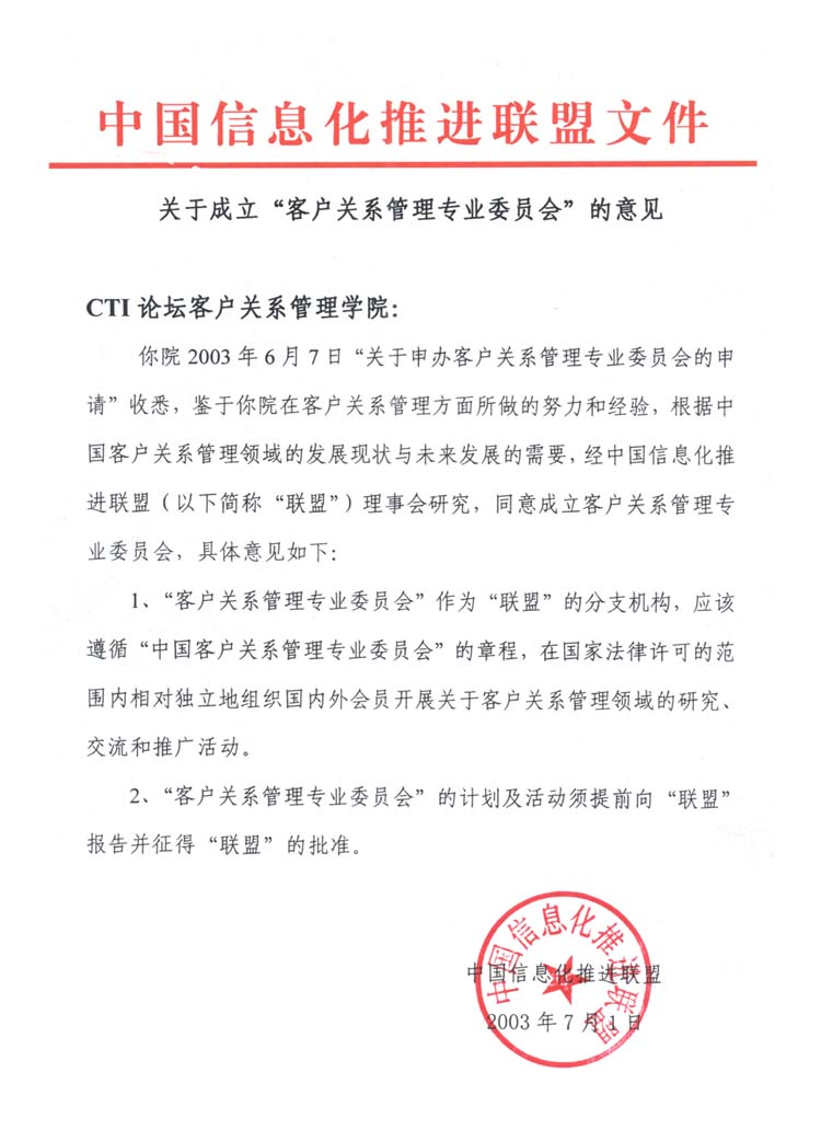 近日,由中國移動、中國網(wǎng)通、中國聯(lián)通、海爾集團(tuán)、聯(lián)想集團(tuán)、摩托羅拉、微軟、CTI論壇等20多家單位發(fā)起籌備的"中國客戶關(guān)系管理專業(yè)委員會"(以下簡稱專委會),經(jīng)信息產(chǎn)業(yè)部中國信息化推進(jìn)聯(lián)盟的批準(zhǔn),正式在京成立。