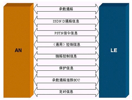 PSTN:規(guī)定了AN如何獲取PSTN用戶線(模擬和數(shù)字)狀態(tài),以及如何向LE傳遞,以便由LE最終完成呼叫控制。其中可能包括特定呼叫協(xié)議的轉(zhuǎn)換和翻譯以滿足核心網(wǎng)中的LE信令標(biāo)準(zhǔn)。