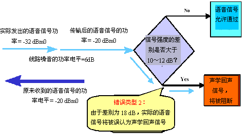 當(dāng)通信鏈路的的另一端被設(shè)計(jì)為傳輸可變強(qiáng)度的信號(hào)時(shí),"錯(cuò)誤類型1"的影響會(huì)急劇增大。在這種情況下,根據(jù)功率電平的絕對(duì)差異來決定阻斷/允許信號(hào)的聲學(xué)回聲控制器會(huì)增大"錯(cuò)誤類型1"出現(xiàn)的可能性。也就是說,使用絕對(duì)功率電平差異時(shí),將聲學(xué)回聲信號(hào)誤認(rèn)為有效語(yǔ)音信號(hào)的概率很大。