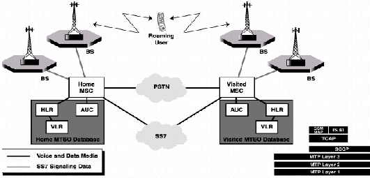 除了空中接口,在無線系統(tǒng)的設(shè)計中支持無線用戶的移動性是主要的挑戰(zhàn)。無線系統(tǒng)對信令的要求明顯要比實(shí)現(xiàn)類似功能的地上有線系統(tǒng)要苛刻得多。結(jié)果使得無線網(wǎng)絡(luò)必須組合更先進(jìn)更全面的信令控制系統(tǒng)。即使移動單元在它的歸屬網(wǎng)絡(luò)中,系統(tǒng)也要隨時跟蹤它的位置,因?yàn)楹羧、認(rèn)證和傳遞功能需要知道它當(dāng)前所處的位置。系統(tǒng)運(yùn)營商提供給用戶的移動等級有越來越復(fù)雜的趨勢,這就要求在系統(tǒng)間必須應(yīng)用復(fù)雜的信令才足以支持漫游、登記和路由尋找等功能。這就是無線系統(tǒng)普遍選擇SS7作為信令協(xié)議的原因。