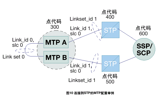 MTP A和MTP B之間的鏈路集的設(shè)置方法與任何其它SS7鏈路和鏈路集相同。如果有額外的數(shù)據(jù)設(shè)置表明此鏈路與其它連接相鄰節(jié)點(diǎn)的鏈路不同,則應(yīng)區(qū)別對(duì)待。